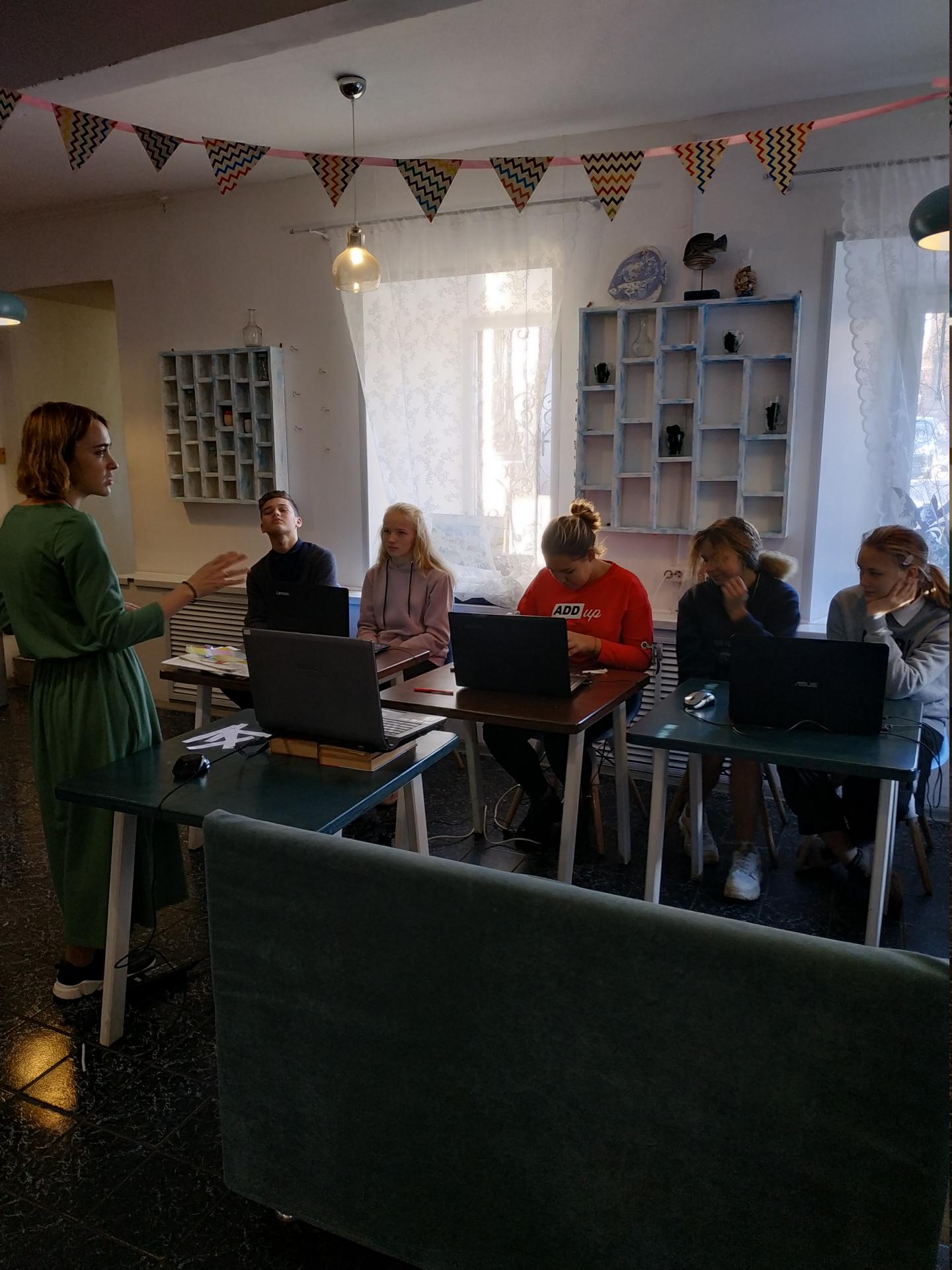 В раках комплекса мер по внедрению и развитию эффективных социальных практик, направленных на сокращение бедности семей с детьми и улучшение условий жизнедеятельности детей в таких семьях, на территории Владимирской области, дети из многодетных и малообеспеченных семей Суздальского района посещают курсы по профессии "Графический дизайнер". На первом занятии дети познакомились с профессиональным дизайнером, показали свой уровень знаний в области компьютерной грамотности и узнали основы Сторителлинга. Продолжилось общение за чаепитием, участники курса узнали, что по окончанию всех занятий каждый овладеет навыками работы в программах Power Point, Canva, Corel Draw, создавать качественные презентации и разрабатывать фирменный стиль.