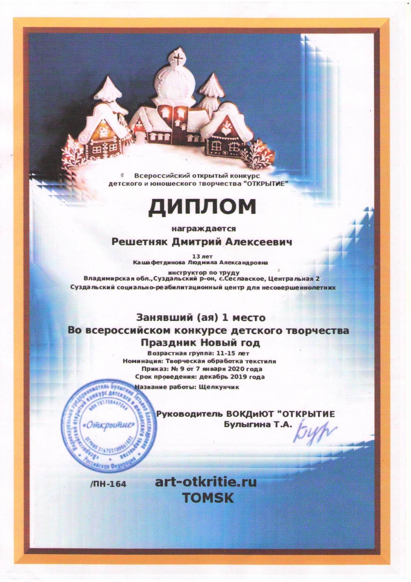 Наши ребята в очередной раз занимают призовые места. Дима Р. получил диплом ВОКДиЮТ «Открытие» заняв I место в конкурсе «Праздник Новый год». А педагог Кашафетдинова Л.А. была награждена почетной грамотой за замечательную подготовку победителя. Поздравляем с победой и желаем дальнейших успехов.