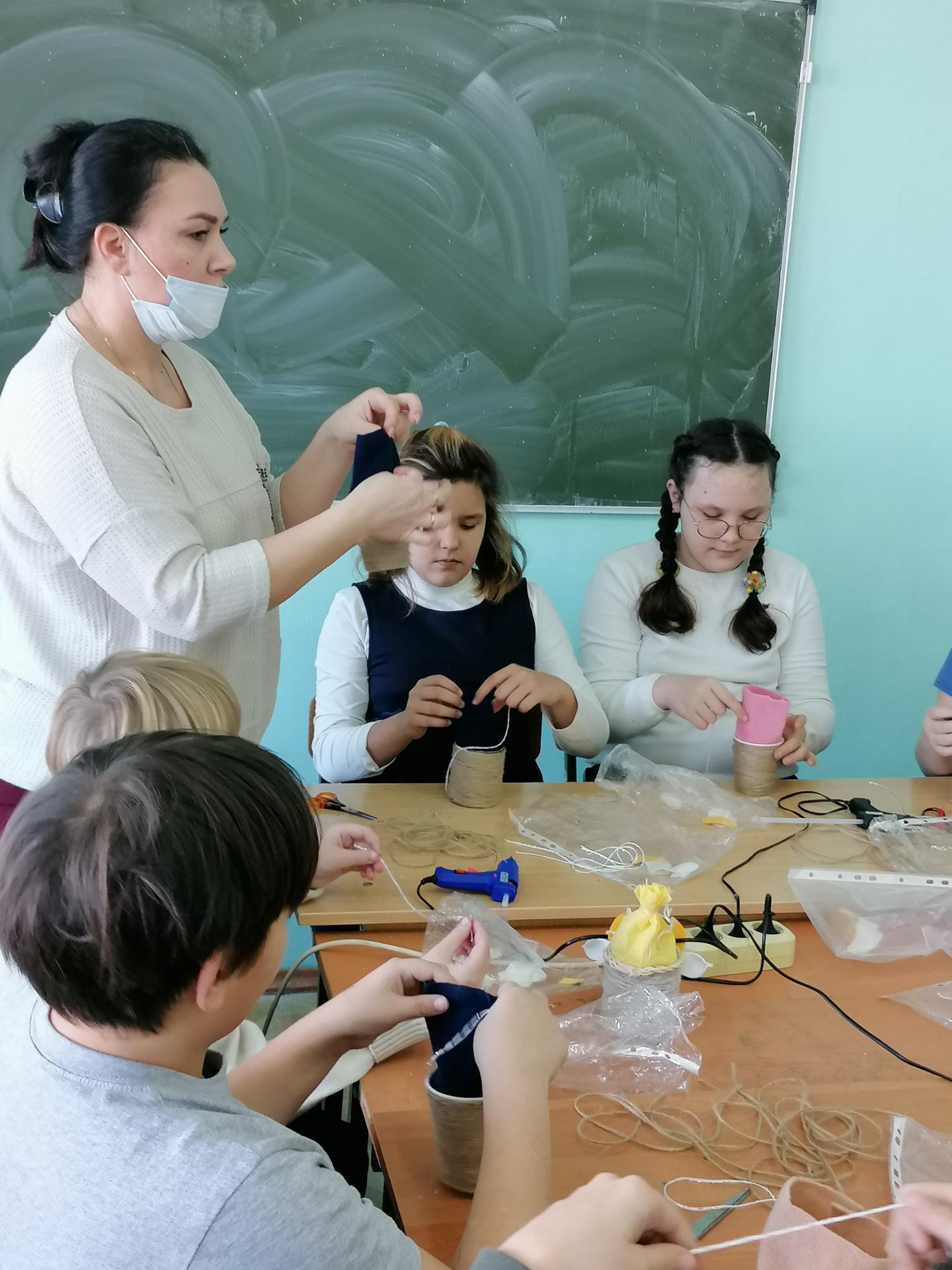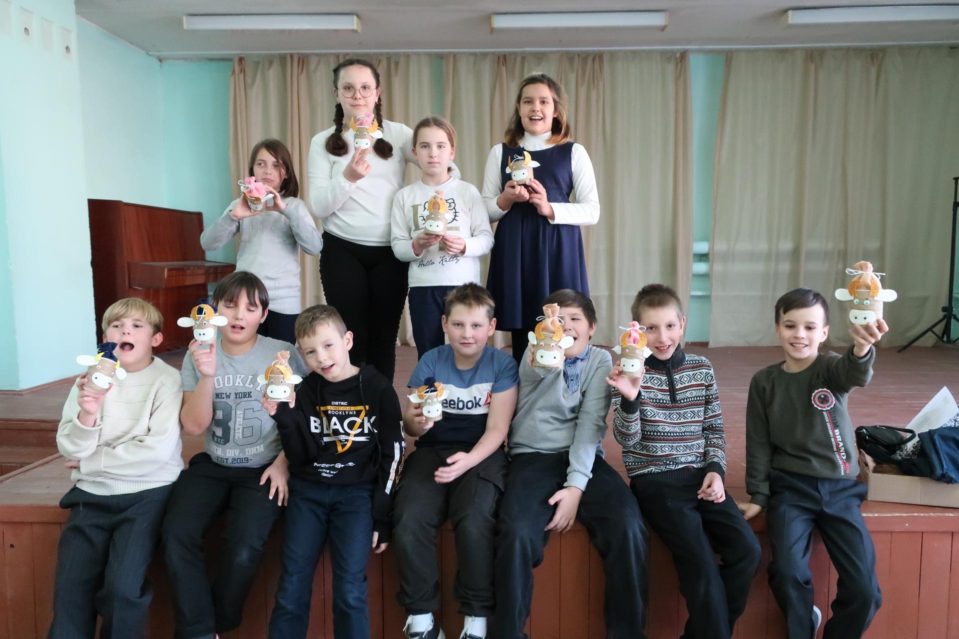 Стремительно приближаются новогодние праздники. И, пожалуй, один из главных пунктов в подготовке к празднику – украшение елки.10.12.2020 г. с ребятами начальной школы на базе МБОУ «Добрынская ООШ» специалистами нашего учреждения проведен мастер-класс по изготовлению украшения на елку символа 2021 года «Новогодний бычок».